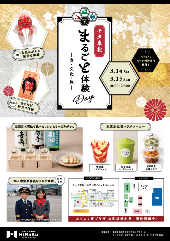 3月14日(土)~15日(日)の2日間限定で、「北東北まるごと体験Days in HiRaKu」を開催いたします。